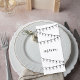 Perfect for place settings or display at each table, this design enhances your guest experience while tying together your décor with understated sophistication. Easily customize each section with your chosen courses to create a polished and cohesive dining presentation.