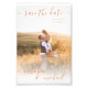 Simple and modern wedding save the date photo enlargement with one large photo. Pretty typography script. This one features a boho couple in the field but any photo will look great! Terracotta clay rust font