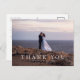Express your heartfelt appreciation to your wedding guests with our Minimalist Wedding Photo Thank You Message Postcard. This elegantly designed postcard features a customisable template for your favourite wedding photo on the front, along with a stylish "Thank You" in a tasteful white font. Personalise it with the couple's first names and wedding date for a classic touch.