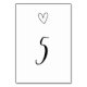 Minimalist Wedding Table Number Card with Heart
