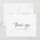 Chic thank you wedding postcard. Beautiful black and white script on the front with sentiment. Centred photo with names and date with heart on the back side. Space available for a handwritten personal message and pre addressed for your guest. Designed by Kimberly Brett.