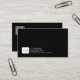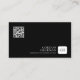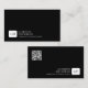 Whimsical, minimalistic, and clean design, independent investment adviser business card design. White square with a custom monogram in black and customisable typography in white and black on a black background. QR code for additional information.