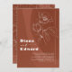 Terracotta minimalist boho wedding invitation features white peony flowers and modern typography
