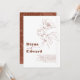 Terracotta minimalist boho wedding photo invitation features white peony flowers, modern typography and couples photo on the backside