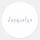 Minimalist White Blue Plain Elegant Modern Name Classic Round Sticker