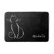 Minimalist white cat on a black background bath mat. Personalise this elegant bath mat with your name.