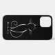 Minimalist white cat on a black background iPhone 12 case. Personalise this elegant phone case with your name.