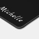 Minimalist white cat on a black background desk mat. Personalise this elegant desk mat with your name.