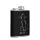Minimalist white cat on a black background flask. Personalise this elegant flask with your name.
