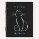 Minimalist white cat on a black background notebook. Personalise this elegant notebook with your name.