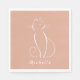 Minimalist white cat on a pink background napkin. Personalise this elegant napkin with your name.