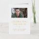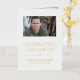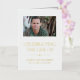 Folded white and gold funeral program printed with a photo of your loved one, their name and years living, and obituary.