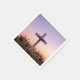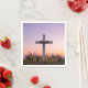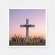 Minimalist white cross adorned with lavender napkin
