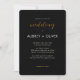 This elegantly simple card is the ideal way to invite your loved ones to share in your special day. It has white text on a contrasting black background and gold foil-coloured accents.