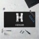 MINIMALIST WHITE ONE LETTER MONOGRAM NAME BLACK DESK MAT