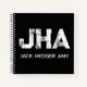 MINIMALIST WHITE THREE LETTER MONOGRAM NAME BLACK NOTEBOOK