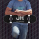 MINIMALIST WHITE TWO LETTER MONOGRAM NAME BLACK SKATEBOARD
