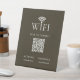 Make Wifi access easy and stylish with this White Wifi Password with QR Code Pedestal Sign on brown background. Perfect for Airbnb hosts, vacation rentals, guest rooms, cafés, salon, studio and offices, this minimalist Wi-Fi wall sign helps guests connect quickly.