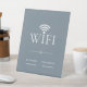 Make Wifi access easy and stylish with this White Wifi Password Pedestal Sign in muted blue background. Perfect for Airbnb hosts, vacation rentals, guest rooms, cafés, and offices, this minimalist Wi-Fi wall sign helps guests connect quickly.