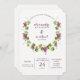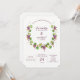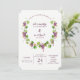 These stylish invitations feature a modern watercolor wreath decorated with purple grapes, green leaves, and vines. There is a clean, white background. This elegant and simple invitation is perfect for your minimalist, wine themed wedding. We have used art from LABFcreations.