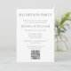 Celebrate your special day with this elegant and minimalist reception party invitation. The clean and simple design features a delicate font and plenty of white space, creating a sophisticated and timeless look that will impress your guests. As a bonus feature, the invitation includes a QR code that guests can scan to RSVP or access additional event details. You can choose to link the QR code to an online RSVP form, a web page with event details and directions, or even to a video or photo gallery showcasing your love story. The minimalist design complements any wedding theme, making it a versatile and stylish choice.
