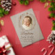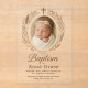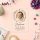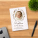 This elegant and minimalistic acrylic baptism invitation features a soft neutral background, a centred baby photo framed with delicate botanical elements, and a subtle cross symbol above. The transparent look adds a modern, clean touch—perfect for sophisticated and faith-inspired celebrations. Customise with your baby's name, event details, and RSVP.