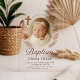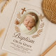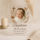 This minimalistic arched acrylic baptism invitation features a soft neutral background, Christian symbols like the cross and dove, and delicate botanical accents. The photo-centred design adds a personal touch, while the acrylic-style layout brings a clean, modern look—perfect for a stylish and spiritual christening celebration.