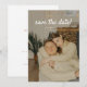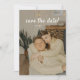 Minimalistic Beige Floral Leaf Wedding Photo Save the Date. Personalise with a favourite couple or engagement photo, your names, and future wedding date on the front, and add additional details for guests on the back.