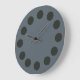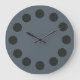 A simple yet interesting design based on just one huge dot covering the entire clock face, and a circle of twelve smaller dots indicating the hours. There are no digits involved.