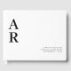This minimalistic wedding guest book is easy for you to personalise. Add the initials of your first name. Our designer has selected a bold font for this. Please use an uppercase (capital letter) for best results. Then you'll add your first names, and your wedding date. Stylish yet simple. The background has been set to white, however, this can be changed to coordinate with your wedding colours.