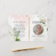 Customise this modern, elegant funeral program with your own photo and text to create a special tribute to your Beloved. An 'In Loving Memory' program featuring Floral Foliage botanical and gold accent memorial program. On the front cover is a photo of your loved one, their name, dates, the memorial venue, and the date of the event. On the inside is an obituary and order of service, and on the back is a thank you note and the venue of the