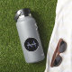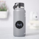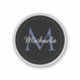 Minimalistic blue circle modern monogram with blue initial and white name on black. Personalizable custom name with a serif initial behind on a black colour.