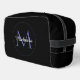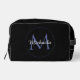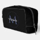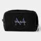 Minimalistic blue circle modern monogram with blue initial and white name on black. Personalizable custom name with a serif initial behind on a black colour.