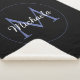 Minimalistic blue circle modern monogram with blue initial and white name on black. Personalizable custom name with a serif initial behind on a black colour.