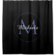 Minimalistic blue circle modern monogram with blue initial and white name on black. Personalizable custom name with a serif initial behind on a black colour.