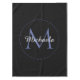 Minimalistic blue circle modern monogram with blue initial and white name on black. Personalizable custom name with a serif initial behind on a black colour.