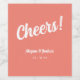 Minimalistic Coral Pink Script Wedding Wine Label. Customise with your wedding date, and bride and groom names in script typography.