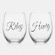 Minimalistic Custom Couple Names Script Stemless Wine Glass