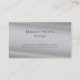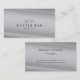 This minimalistic business card features art deco style fonts against a silver/gray background.