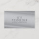 This minimalistic business card features art deco style fonts and a dark gray background.