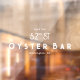 This minimalistic window cling features art deco style fonts in white.
