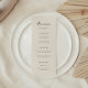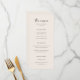 Minimalistic Elegant Beige Script Wedding Menu. Add bride and groom names, your wedding date, and all of your wedding menu items below.
