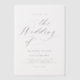 This wedding invitation features an elegant and minimalistic design, with classic black calligraphy and serif fonts.
