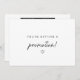 Minimalistic "You're Getting A Promotion!" Baby Pregnancy Announcement. Announce your pregnancy to family and friends with this modern script pregnancy announcement card. Customizable text includes "you're going to be a new... auntie" on the back. Leave text as is, or replace with grandparents/nana/uncle etc.