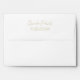 Whimsical minimalistic modern, white background, customisable gold script calligraphy, elegant wedding envelope design. The white background with customisable gold typography evokes a feel of classic elegance.
