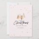 Elegant gold Christmas trees, simple illustration on a dusty pink background, customisable greeting card. Elegant minimal script typography and customisable text are in black.