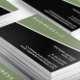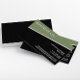 A modern, minimalistic business card design featuring a slanted green colour block above a black pinstripe colour block. A simple modern design with a masculine feel. Great for a variety of business types.