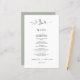 Minimalistic Wedding Menu Invitations - features elegant watercolor twig and simple black text. The reverse side of this elegant menu card is dusty pastel green.