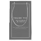 Very simple mono wedding thank you favour bags in grey with white text and a thin white frame. Personalised with your own thanks, bride and grooms names, wedding details and wedding attendants name and role. Other matching items available. Design by www.mylittleedenweddings.com