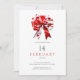 Happy Valentine's Party invitation featuring a red heart bow tie on a white background.